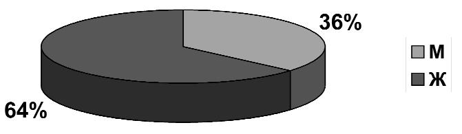 Нами проанализирован половозрастной состав пациентов стационаров хосписов (рис. 4, 5): 36 % пациентов — мужчины, 64 % — женщины, что свидетельствует о меньшей социальной защи щенности женщин;