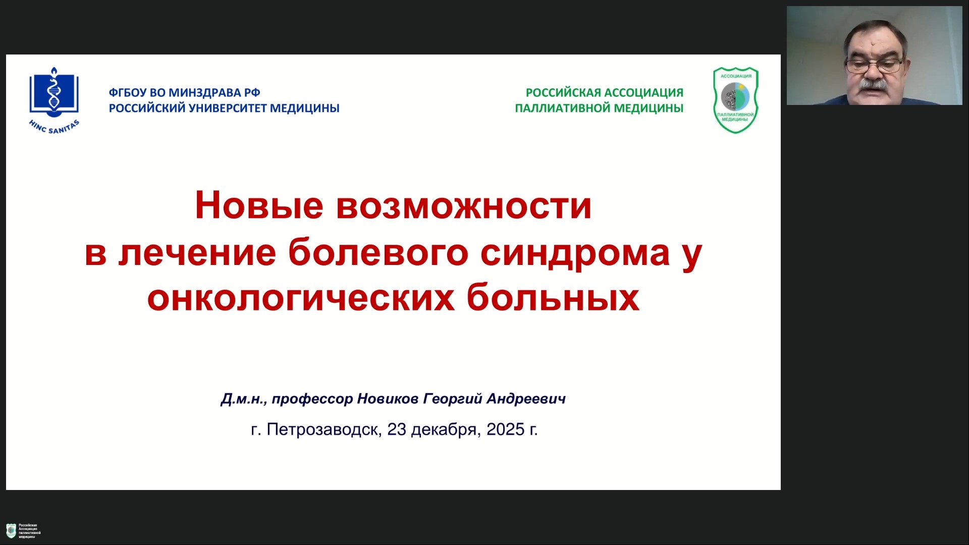 Новые возможности в лечение болевого синдрома у онкологических больных - Новиков Георгий Андреевич, д.м.н., профессор, заведующий кафедрой паллиативной медицины ФГБОУ ВО Минздрава России «Российский университет медицины», председатель Правления Российской Ассоциации паллиативной медицины, г. Москва