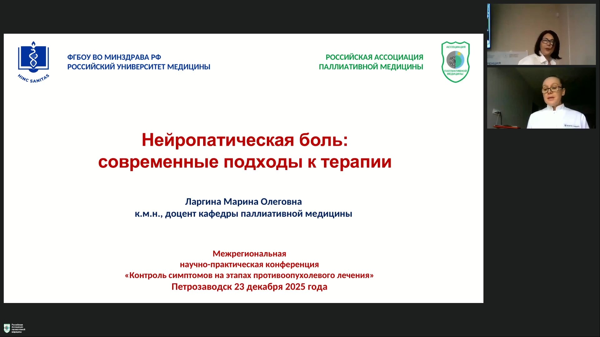 Нейропатическая боль. Современные методы терапии - Ларгина Марина Олеговна, к.м.н., доцент кафедры паллиативной медицины ФГБОУ ВО Минздрава России «Российский университет медицины», г. Москва. (онлайн) Модератор в зале Новиков Георгий Андреевич.
