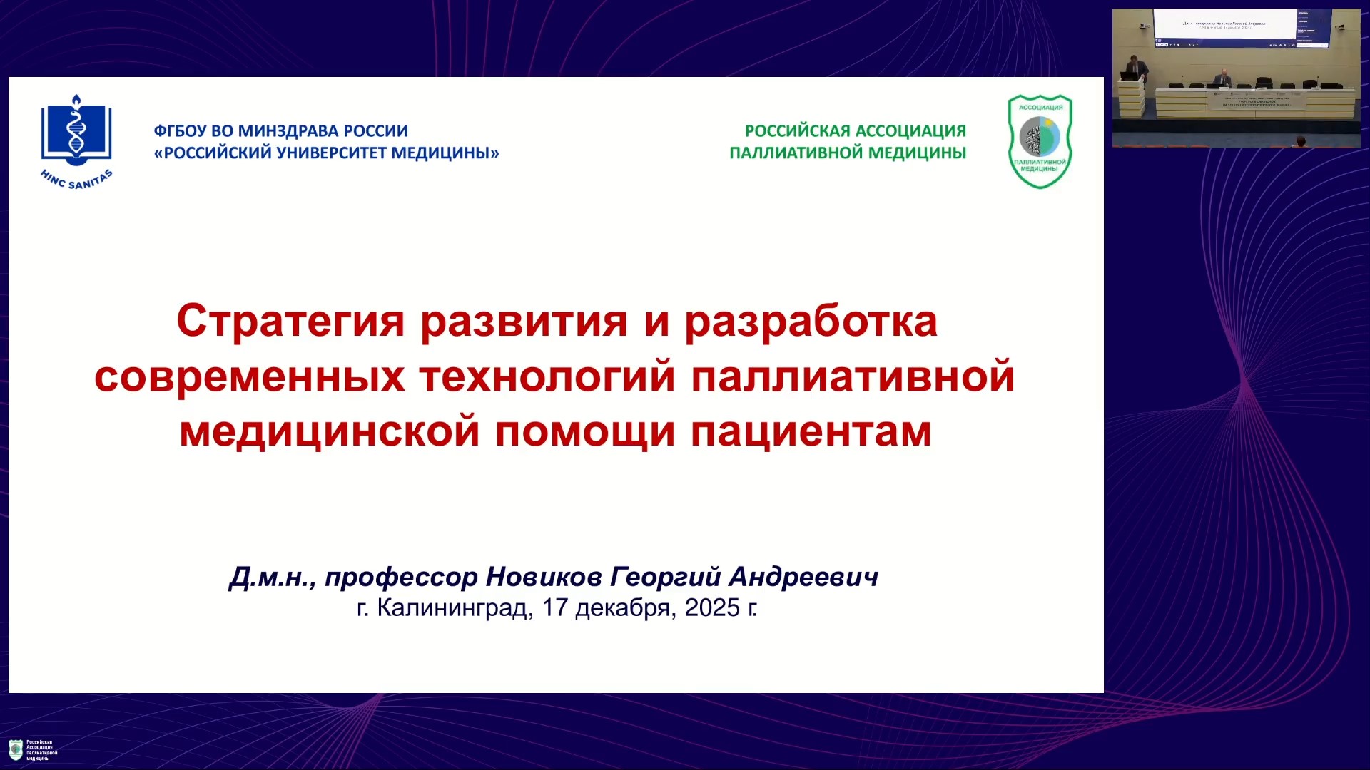 Стратегия развития и разработка современных технологий паллиативной медицинской помощи пациентам - Новиков Георгий Андреевич, д.м.н., профессор, заведующий кафедрой паллиативной медицины ФГБОУ ВО Минздрава России «Российский университет медицины», председатель Правления Российской Ассоциации паллиативной медицины г. Москва