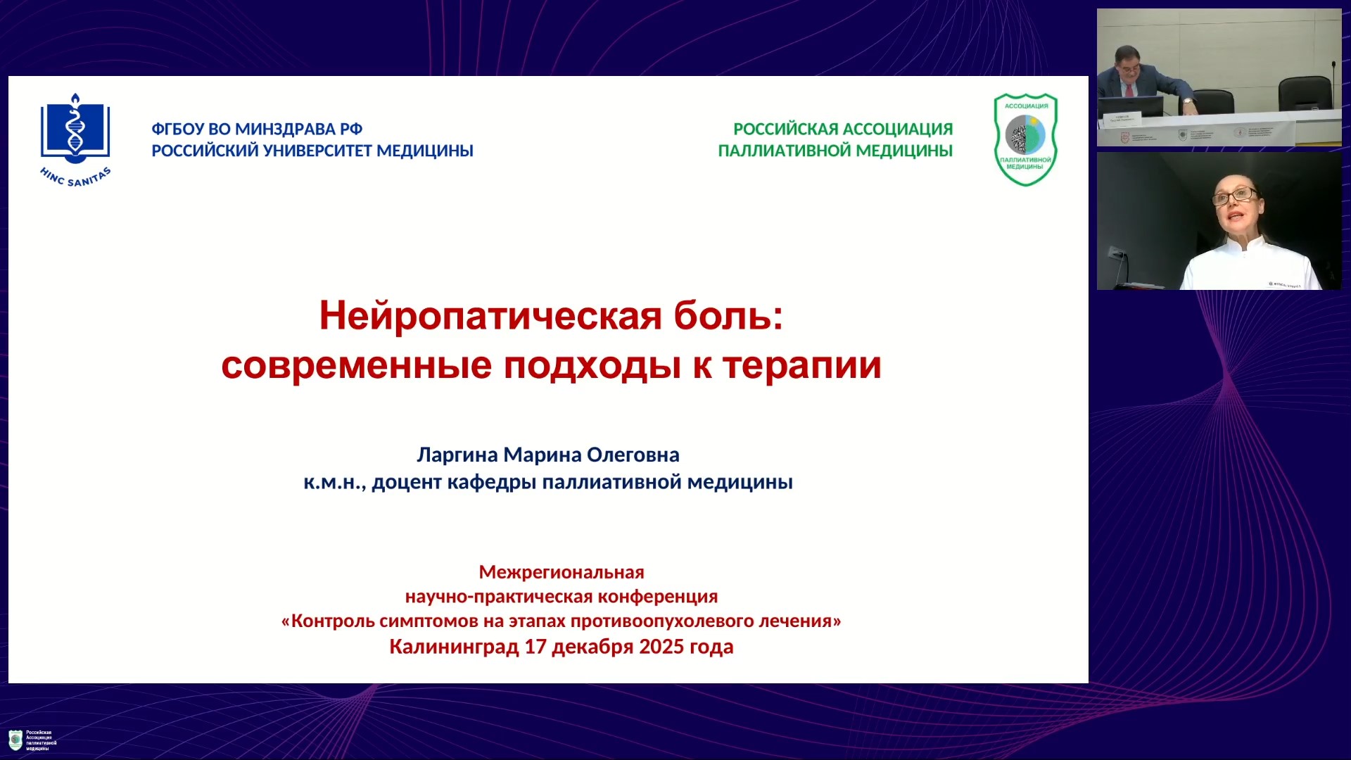 Нейропатическая боль. Современные методы терапии - Ларгина Марина Олеговна, к.м.н., доцент кафедры паллиативной медицины ФГБОУ ВО Минздрава России «Российский университет медицины», г. Москва. (онлайн. модератор Новиков Г.А)