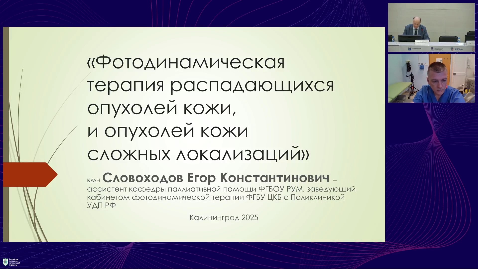 Фотодинамическая терапия распадающихся опухолей кожи и опухолей кожи сложных локализаций - Словоходов Егор Константинович, к.м.н. Центр онкологии ФГБУ ЦКБ с поликлиникой УДП РФ г. Москва. (онлайн. модератор Новиков Г.А)